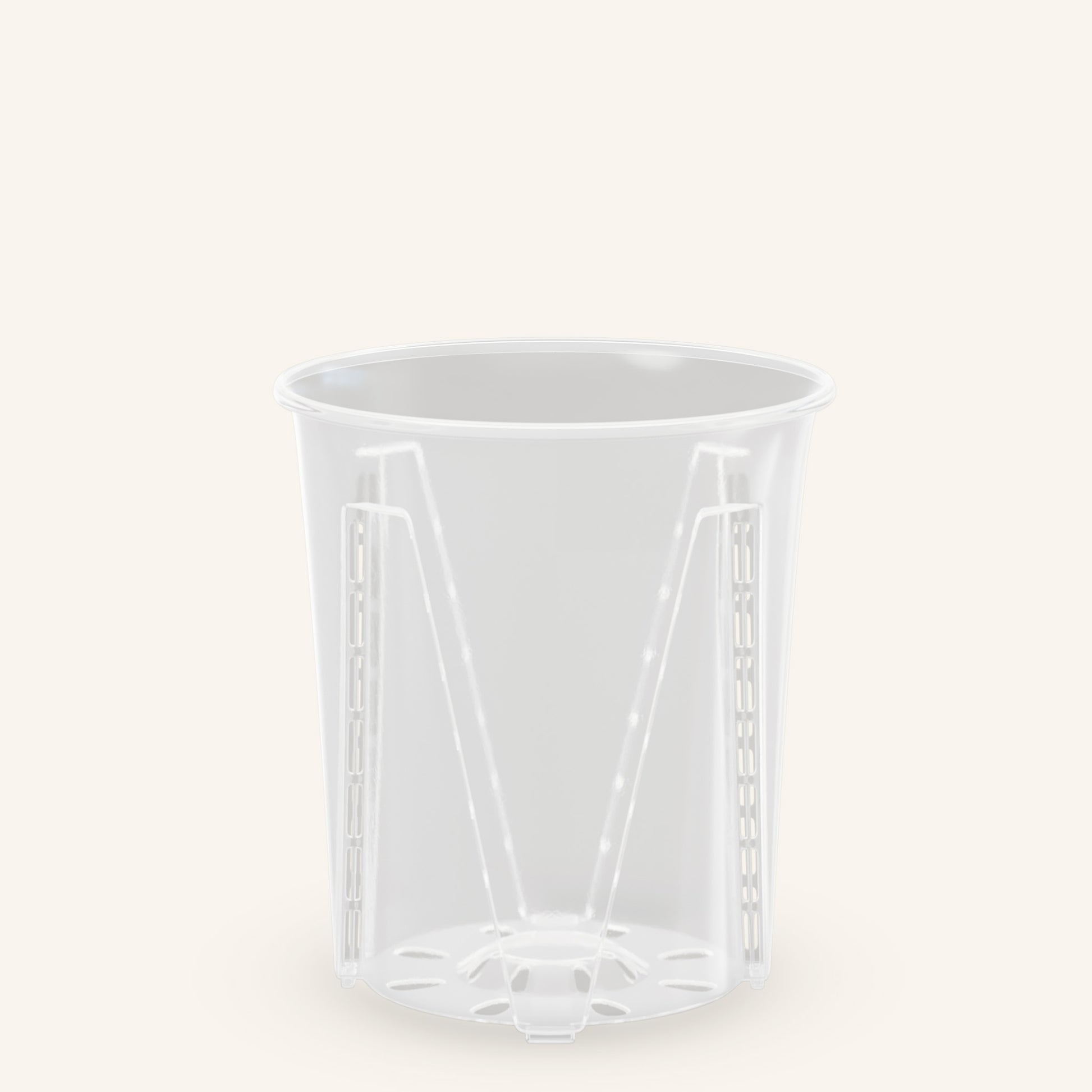 Trasparente e resistente. Permette di vedere le radici crescere e controllare facilmente il livello dell'acqua. Realizzato in plastica PP5 completamente riciclabile. Aiuta le radici a respirare.