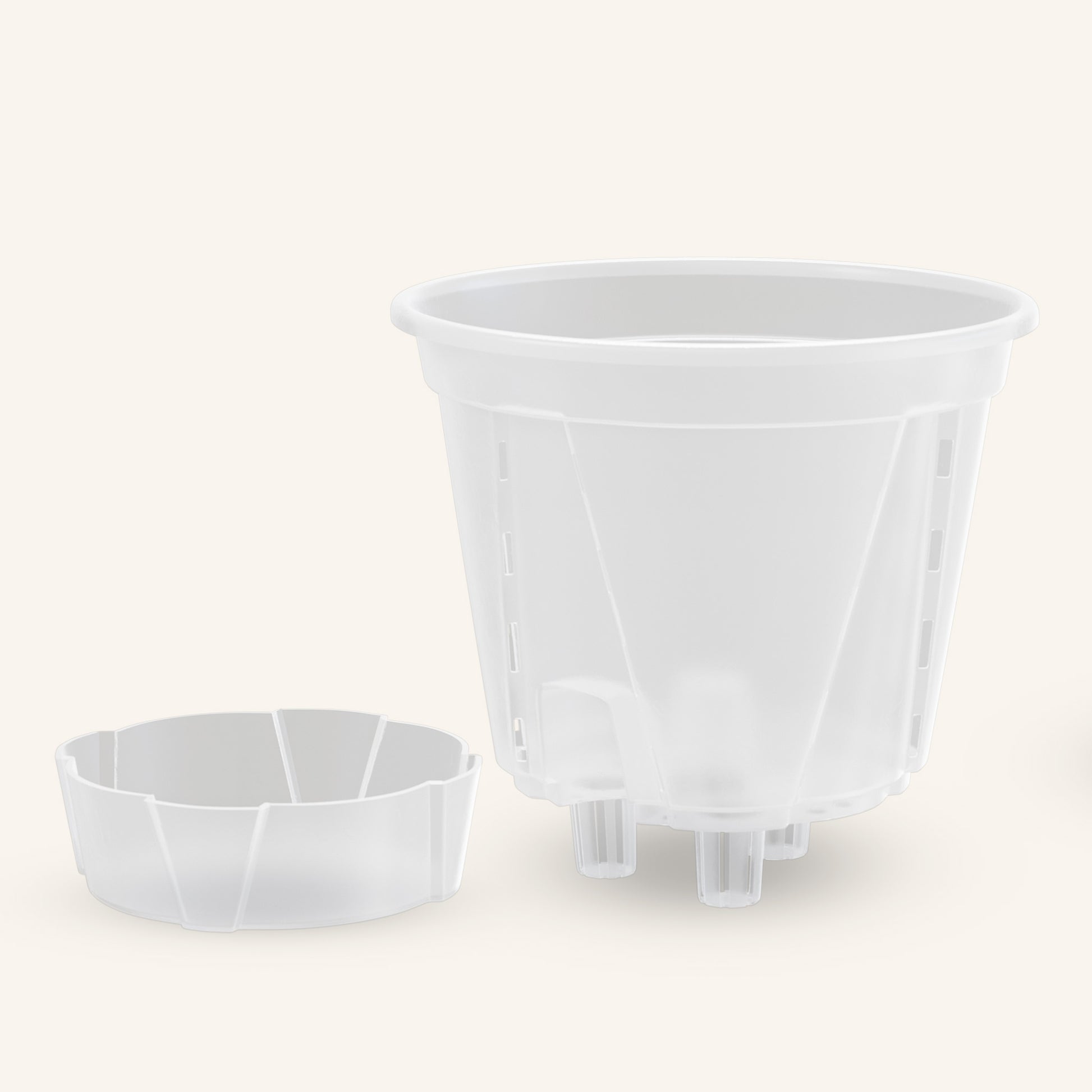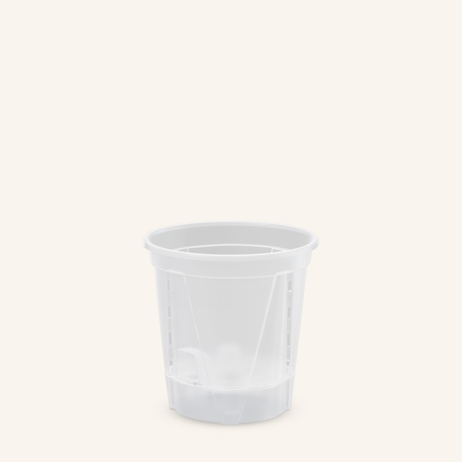 Trasparente e resistente. Permette di vedere le radici crescere e controllare facilmente il livello dell'acqua. Aiuta le radici a respirare. Realizzato in plastica PP5 completamente riciclabile.