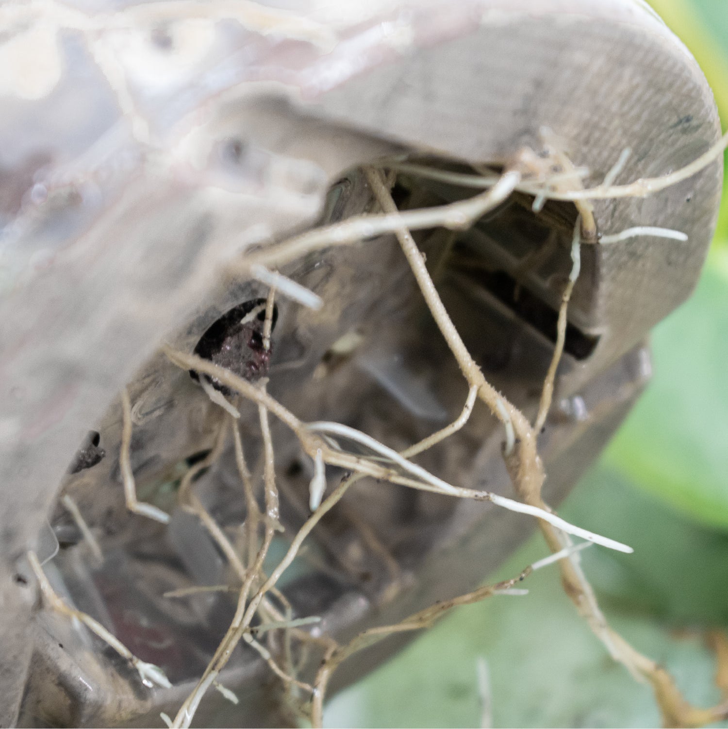 Hai una talea cresciuta in acqua? Puoi piantarla direttamente nei SYBAStones. Per le piante coltivate nel terreno, è meglio togliere tutto il terriccio vecchio prima di trapiantarle, soprattutto se hai avuto problemi con i moscerini fungini. È fondamentale che le radici siano pulite.