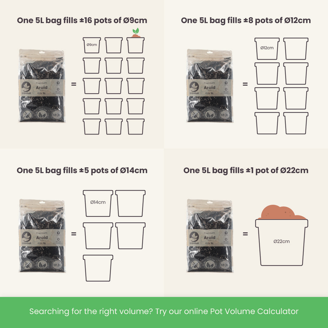 Dai un'occhiata a questo strumento per calcolare il volume del vaso per scoprire quantoTerriccio per Lithops ti serve.