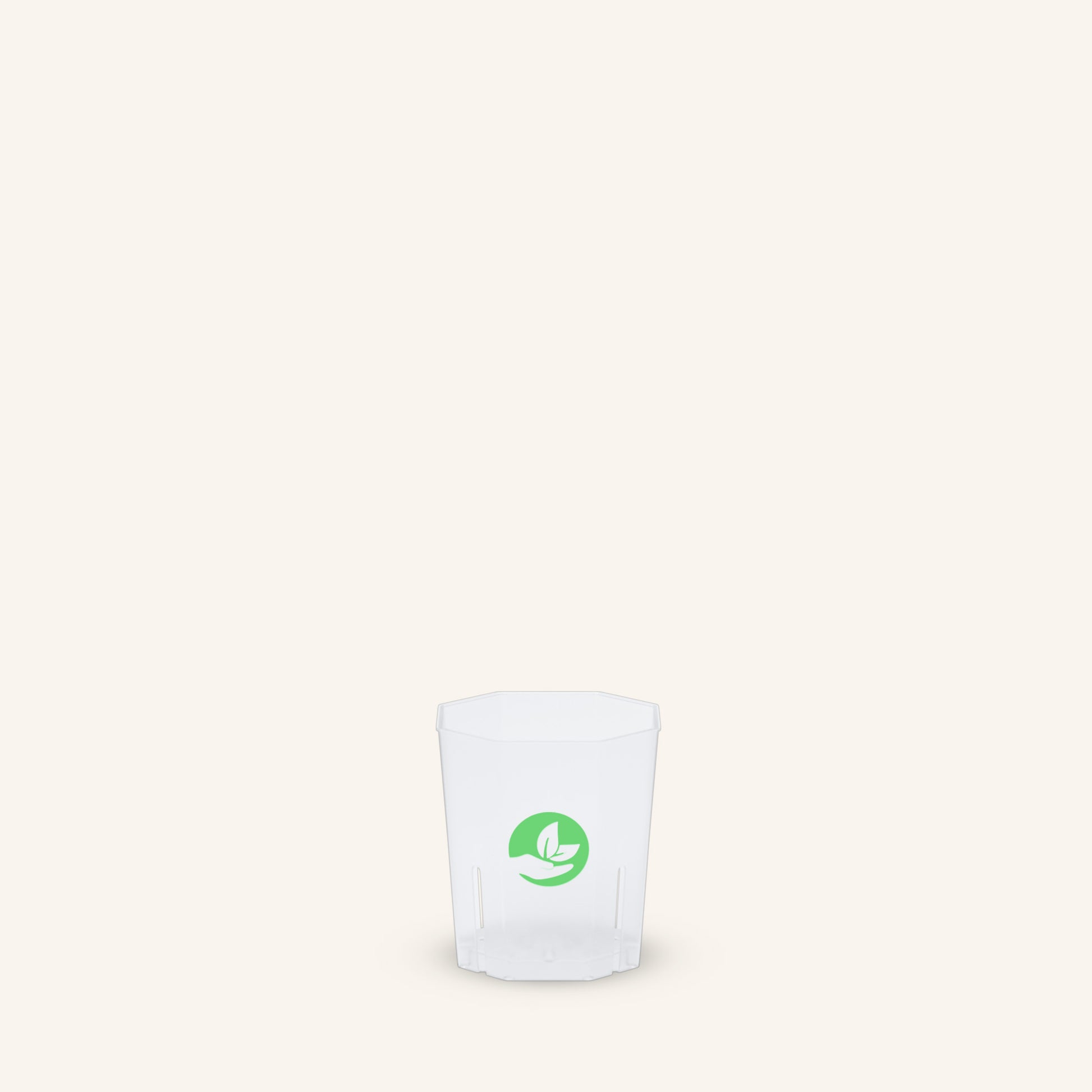 Quadrato, robusto e trasparente. Guarda crescere le radici! Fatto di plastica PP5 completamente riciclabile.